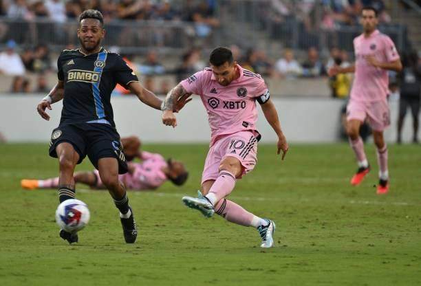 当然,座无虚席的费城球迷关注的或许不是主队胜负,而是梅西的表演,在被对方双人关门粗野放倒后,梅西旋即用进球予以回应:第20分钟,反击中接应队友横推,从中圈启动的梅西启动几步后踢出贴地斩,明显准备不足的布莱克任由皮球从左手边滚入远角。31.8米的进球距离,是梅西生涯第二远的进球,仅次于11年前他创造自然年91球神迹时攻破马洛卡城池时的纪录。就当球迷期待梅西继续用漫威角色经典手势庆祝时,返璞归真的阿根廷天王却只是跃起挥拳庆祝,毕竟,家人团并未随队出征客场,“商业互捧”的猜测也可正式告一段落。