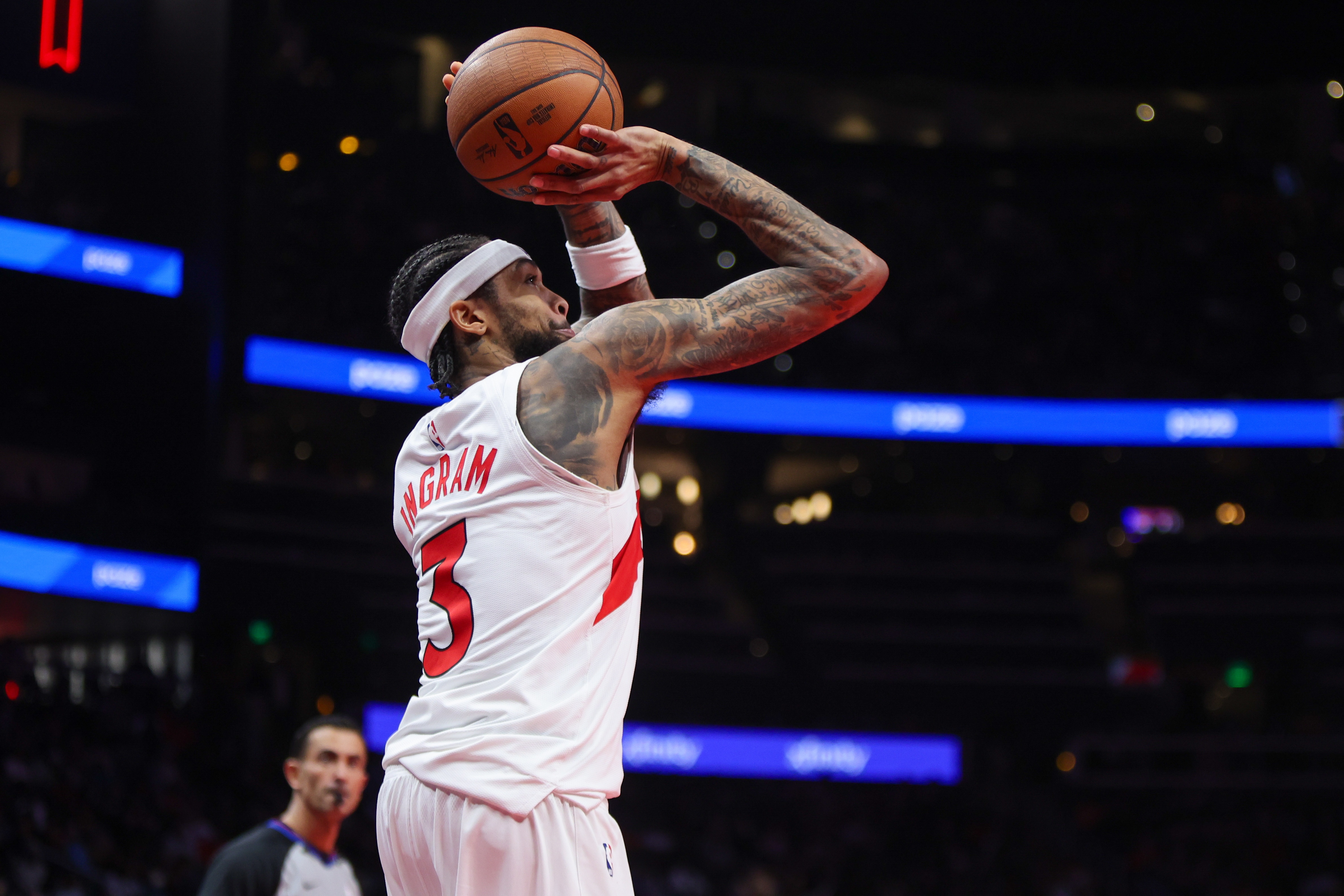 英格拉姆:后仰跳投。毫无疑问。我从小看科比和杜兰特的比赛长大,但也经常在YouTube上研究经典球员。我总是反复观乔丹的后仰跳投、麦迪的"试探步急停跳投",或是艾弗森变向后的急停干拔。那个时代的球员都精通中距离技术。所以对我来说,后仰跳投就是我的赛场肖像核心。